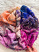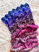 -Hue Loco DK, DK weight (#3), 75% superwash merino wool, 25% nylon 49 yards / 20 gram mini skein. Sample uses approximately 1170 yards of mini skeins (24 mini skeins) and 180 yards of a coordinating full skein; the sample is created with the 2025 Starlight Fade Advent.