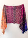 One size - a project made with recommended yarn makes a wrap that is 70” long x 20” wide.