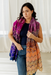 One size - a project made with recommended yarn makes a wrap that is 70” long x 20” wide.