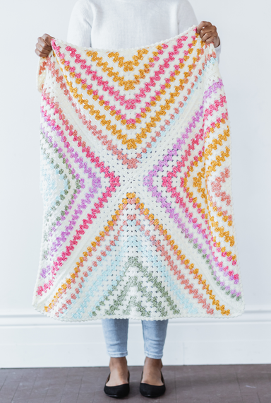 Embrace the energy of spring when you make the Gumball Afghan for someone special. Made using a modified version of the classic Jacob’s Ladder stit...
