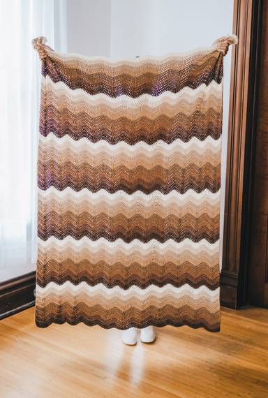 The old is new again! The Mocha Ripple Afghan is a fresh take on the classic crochet ripple stitch pattern using Lion Brand Skein Tones yarn. 8 col...
