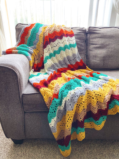 Ready to try Tunisian crochet? You found the perfect pattern! The Bahama Blanket is a fun, beginner-friendly Tunisian crochet chevron afghan that k...