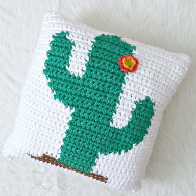 Cuddly Intarsia Crochet Pillow || HAPPY CACTUS PILLOW || Crochet Pattern// Tutorial for a cuddly square pillow, using the crochet intarsia techniqu...